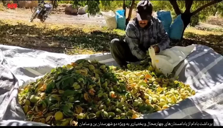 برداشت بادام از بادامستانهای چهارمحال و بختیاری